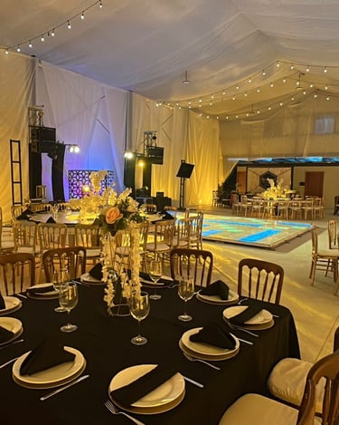 Desde arreglos florales y centros de mesa hasta montajes de mobiliario elegante. Creamos ambientes únicos para bodas, XV y eventos sociales. Podemos diseñar propuestas temáticas o personalizadas según tu idea.